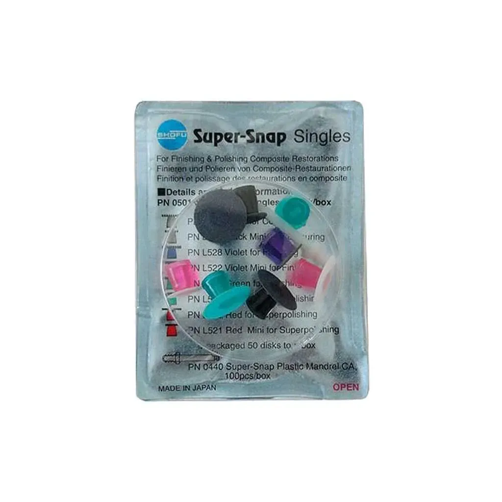SUPER-SNAP singles son discos pulidores diseñados para el contorno, acabado y pulido fácil, rápido y confiable de resinas compuestas.