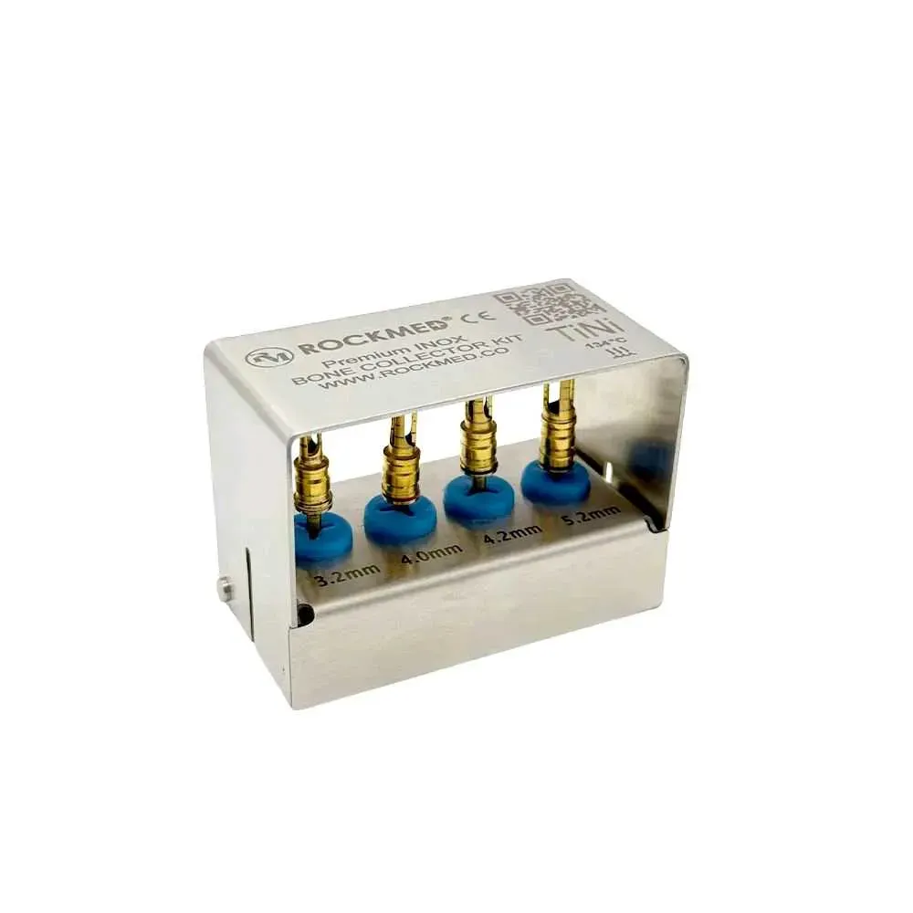 El Kit Colector de Hueso Autotriturador de ROCKMED está diseñado para la recolección de hueso autólogo durante procedimientos de implantología y cirugía oral.